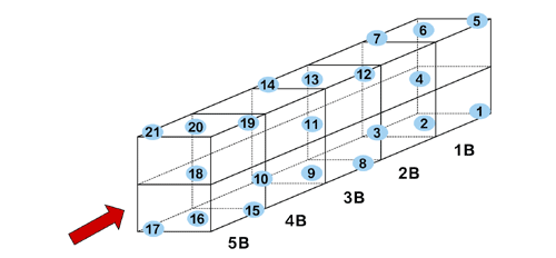 【温度測定センサーレイアウト(5車入:21点測定)】